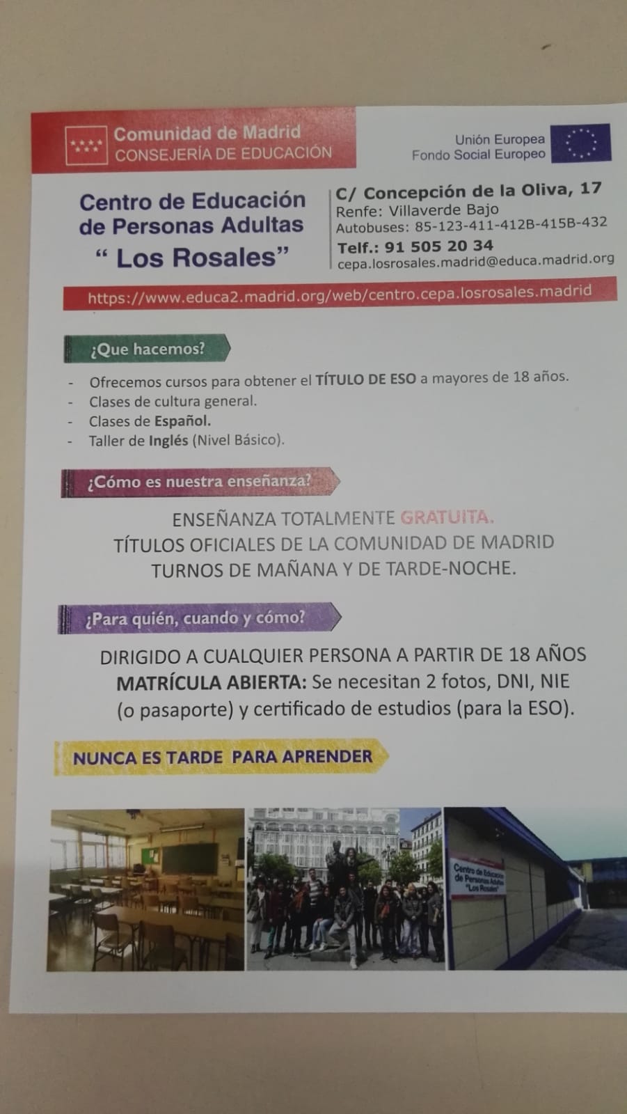 Para más información no duden en acercarse al centro en la Calle Concepción de la Oliva, 17 o llamar al teléfono 915052034 o visitar su pagina web.