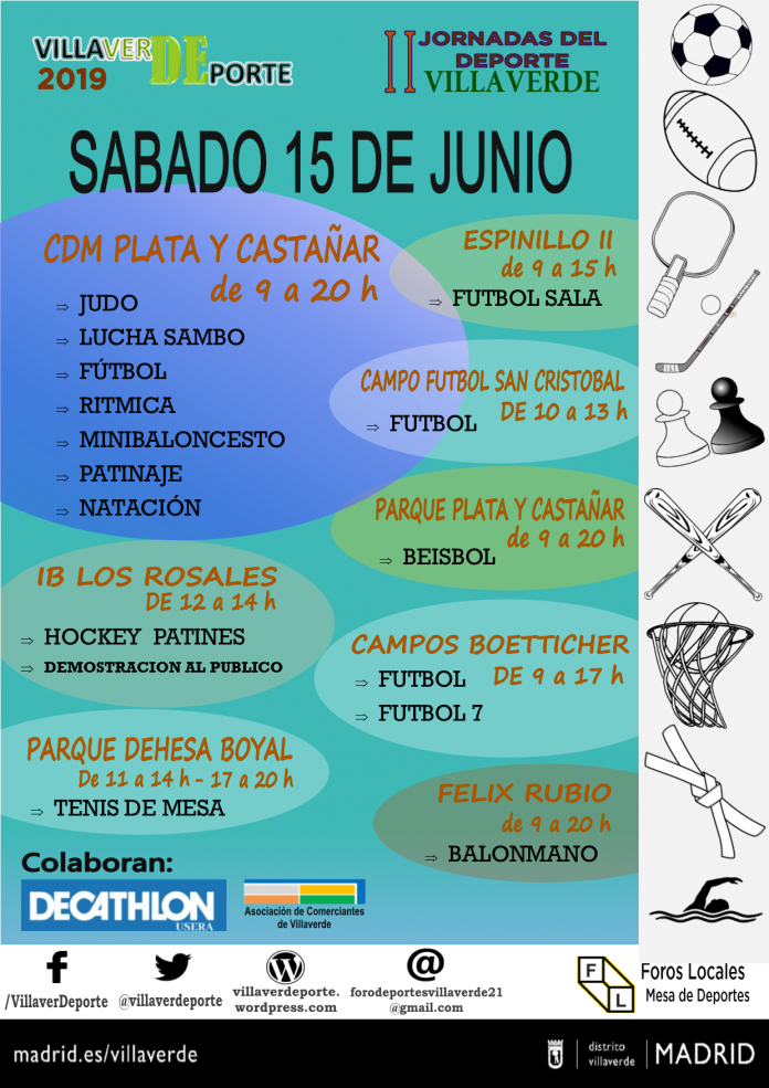 Los barrios del distrito se convertirán en un gran escenario multideporte los dias 15 y 16 de Junio. En él se llevarán a cabo numerosas modalidades deportivas diferentes, si bien pondremos el foco en deportes minoritarios que van más allá del fútbol y el baloncesto.