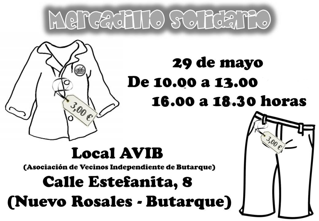 Este miércoles 29 de mayo la Asociación Republicana de Villaverde organiza un mercadillo de ropa en el local de AVIB (calle Estefanita 8) en los horarios de 10h a 13h y de 16h a 18:30h. L@s vecin@s podrán encontrar prendas nuevas de todo tipo a un precio de 3€/unidad, un precio asequible a cualquier bolsillo, incluidos los más humildes, y cuyos fondos servirán de ayuda para sufragar los gastos de la asociación. Más información de la Asociación Republicana de Villaverde en el blog: http://republicanosdevillaverde.blogspot.com.es/